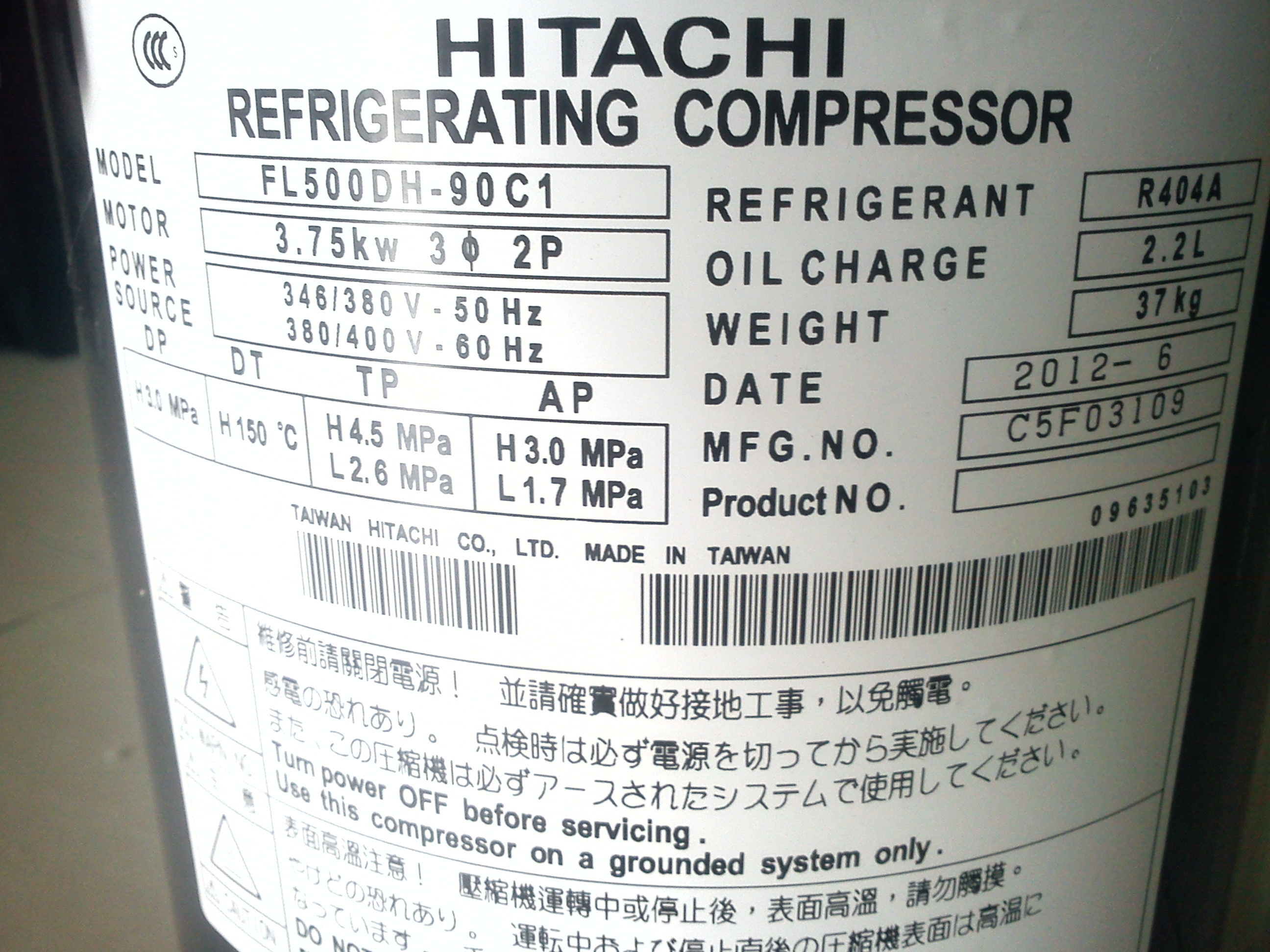 Kompresor gulir horizontal refrigerasi Hitachi baru asli kompresor gulir horizontal Hitachi ZS7516S1